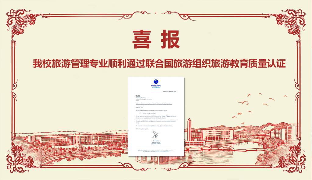我校旅游管理专业通过联合国旅游组织旅游教育质量认证