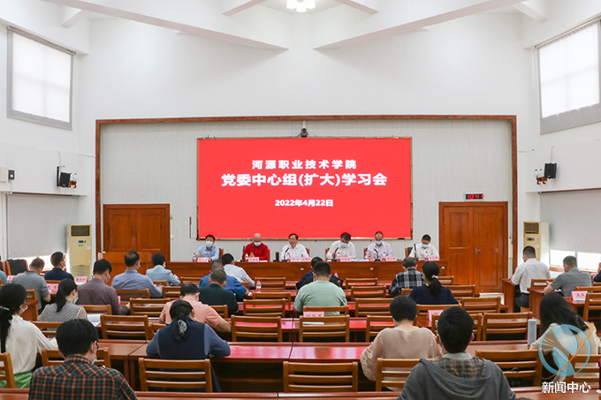 4月21日,我校于行政楼C108召开党委中心组(扩大)学习会。我校党政班子成员,各部门主要负责人,各党总支书记、副书记,全体辅导员参加此次会议,本次会议由党委书记韦荣主持。