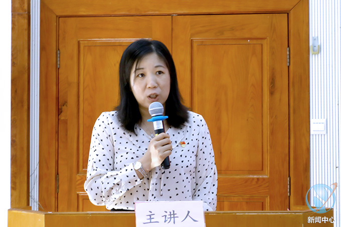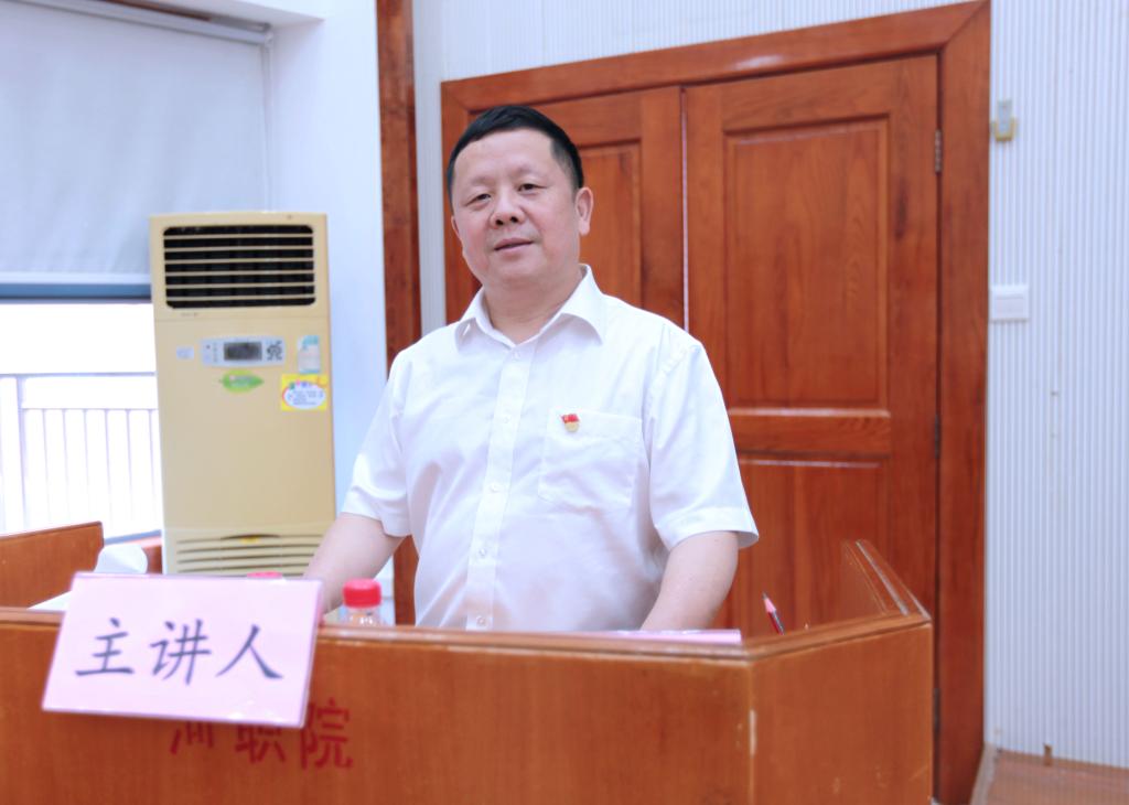 思政部教师代表杨党校博士以习近平重要讲话精神当中的“青年学生、立德树人、红色基因、校史展、大先生”等关键词展开阐释。为传承红色基因,赓续红色血脉,我校和市委党史研究室合作成立红色文化研究院,成为广东首个“校地合作”共建的红色文化研究院。