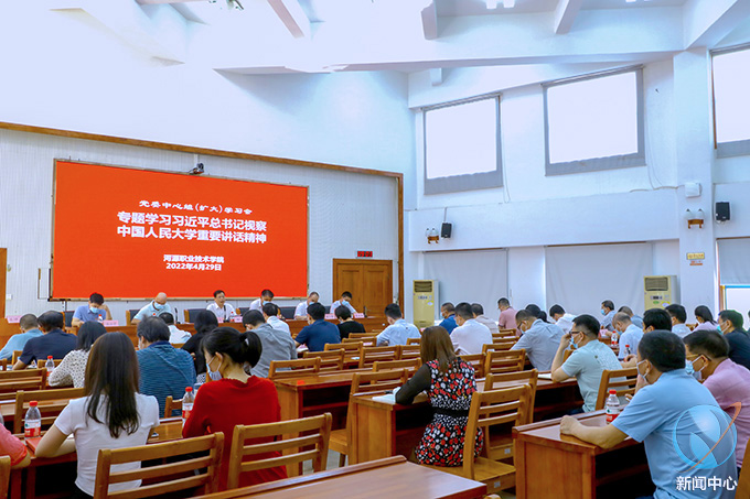 4月29日,我校党委韦荣书记主持召开党委中心组(扩大)学习会,专题学习习近平总书记在中国人民大学考察时的重要讲话精神。校领导、各部门主要负责人、全体党支部书记以及全体思政教师参加了学习会。