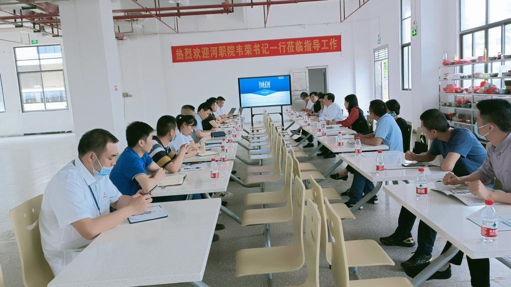 最后,韦荣书记一行走访了华益盛,受到了集团总经理刘姣女士的热烈欢迎,双方就校企深度合作展开了深入的交流。公司负责人介绍了华益盛集团的总体布局及河源市华益盛模具有限公司的发展规划,其中重点提到河源分公司在招工及用工方面的需求。座谈会上,韦荣书记介绍了我校以“双高”为目标,在技能竞赛和高水平专业群上优势明显,我校的专业设置和华益盛公司岗位对接紧密。对未来与公司的合作与发展提出以下两点希望:一是校企双方继续推进产教融合,校企合作,在项目申报和科研方面有所提升;二是落实市委决策部署,校企双方共同探讨储备干部的培养,加强互动,更多地留住本地人才,吸引外来人才。
