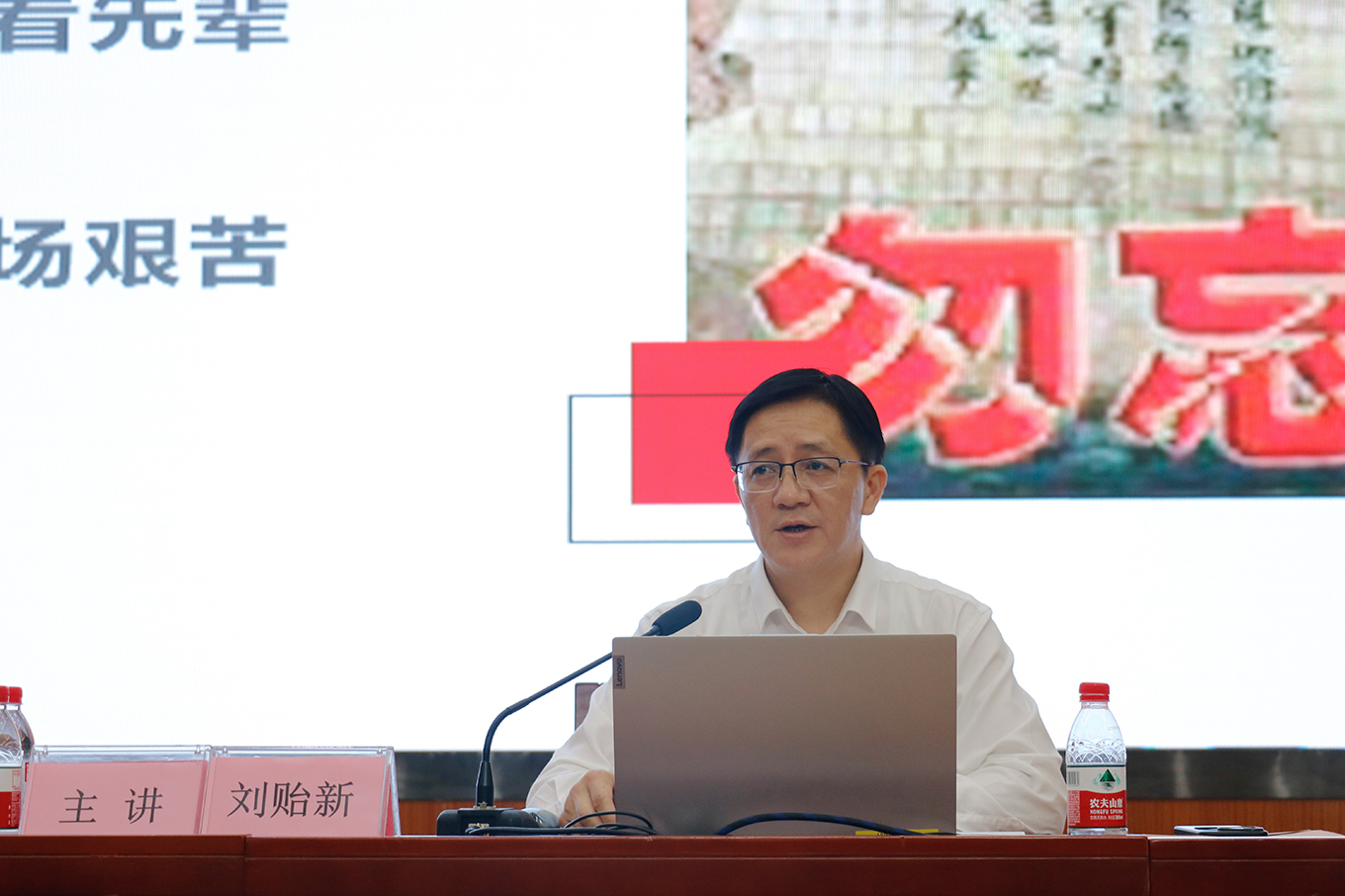 11月6日上午,刘贻新校长在学术交流中心报告厅为电信学院、工商学院相关专业的300余名大一新生讲授“思政第一课”,电信学院负责人周永福、工商学院负责人张颖参加活动,活动由马克思主义学院负责人杨党校主持。