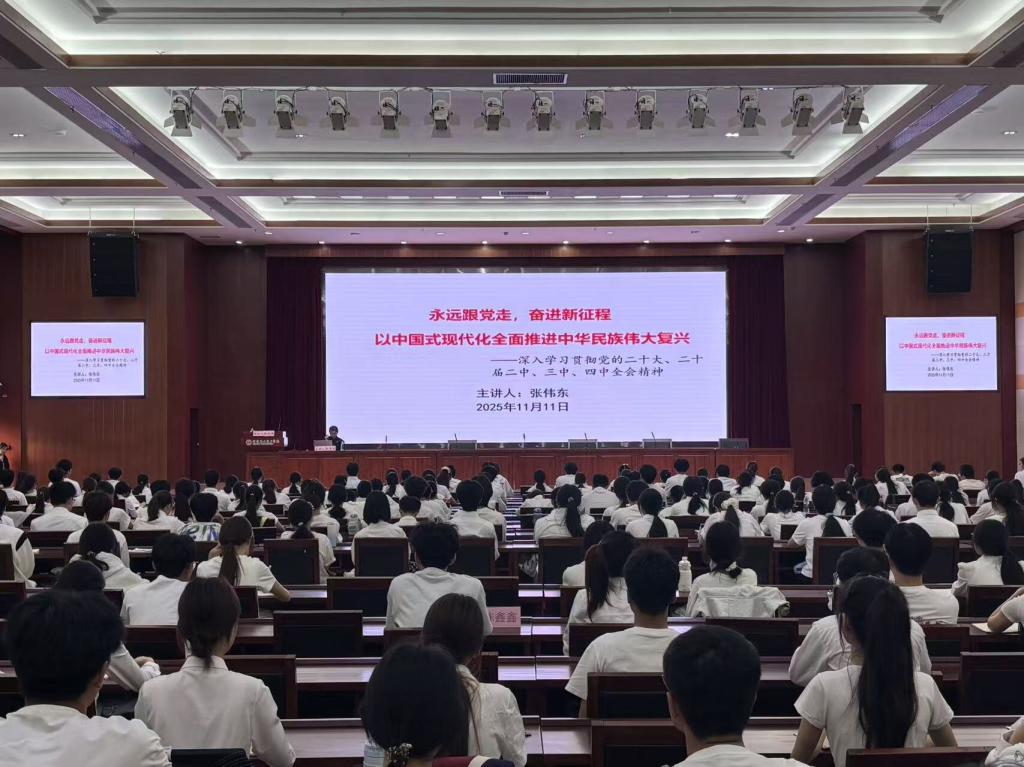 为深入学习贯彻党的二十届四中全会精神,筑牢青年学生骨干的思想根基,我校于11月11日下午在学术交流中心报告厅开展了“淬炼青春信仰,勇担时代使命”为核心内容的主题团课,本次课程由张伟东老师主讲授课,部分团员和入团积极分子参加了此次学习。