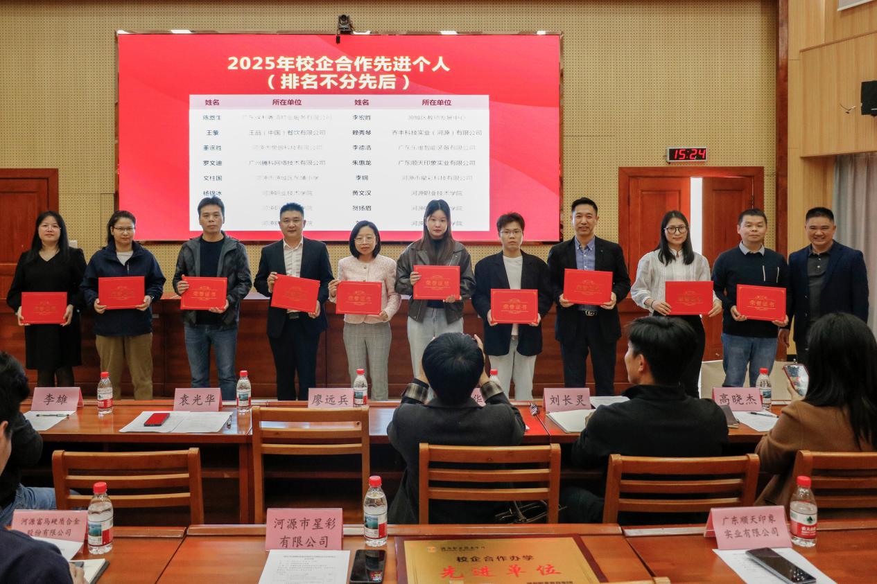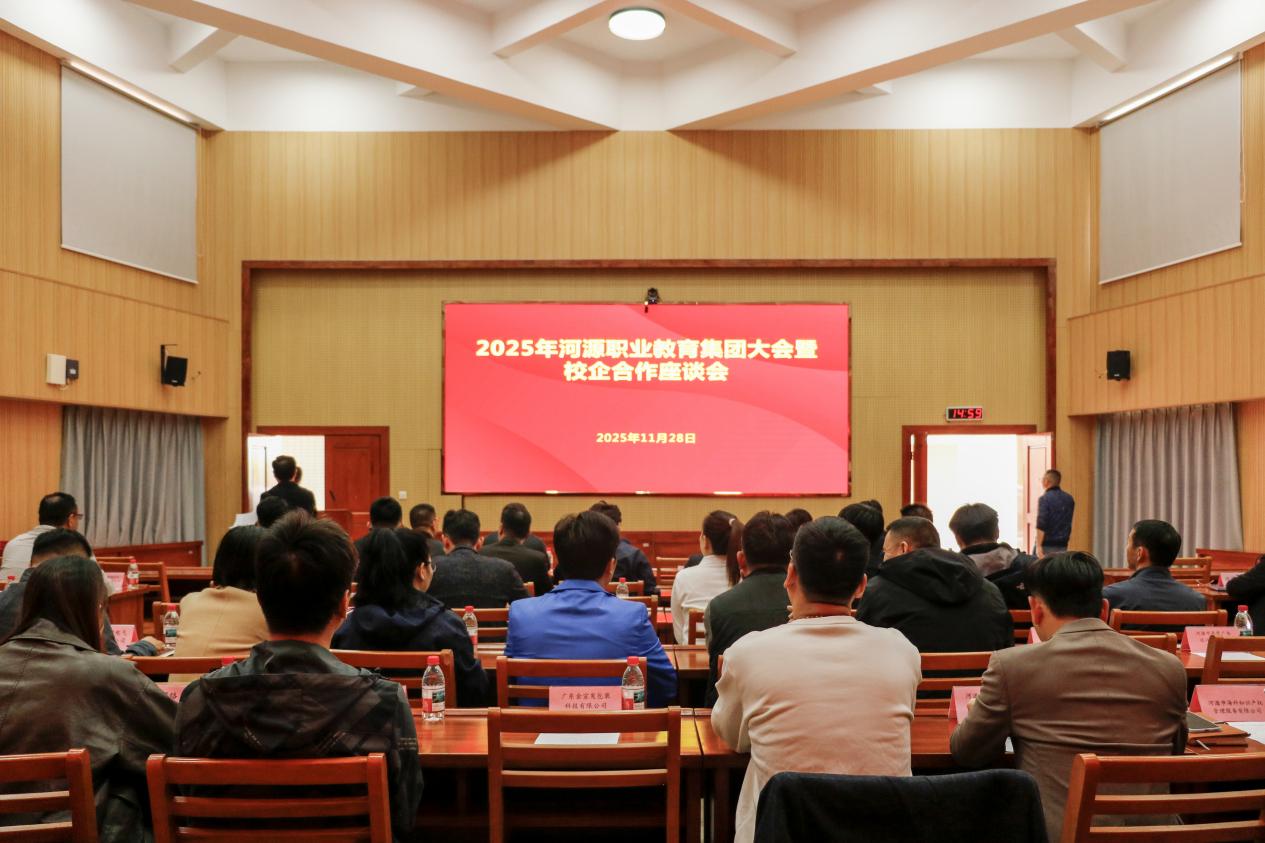 11月28日,河源职业教育集团2025年大会暨校企合作座谈会在我校隆重举行。学校副校长袁光华,科研处处长廖远兵,各二级学院副院长、校企办主任,集团各成员单位60多名代表齐聚一堂,共商产教融合新趋势,共绘协同发展新蓝图。会议由廖远兵处长主持。