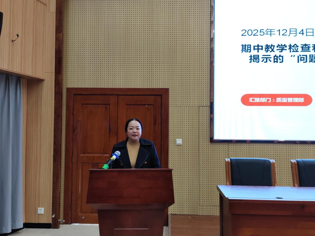 会上,质量管理部李绮副处长作期中教学检查总结,梳理本学期教学检查中存在的问题、教学运行和质量管控的亮点与短板,明确了教学改进的重点方向,特别对教案的撰写,专业教研会议的开展,督导教学日常巡查,教师个人教学诊改报告的撰写等内容进行了详细讲解。