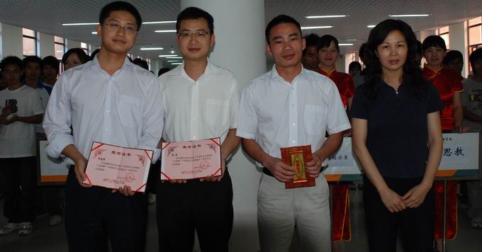 此次比赛激动人心,参赛选手们都展现了自己的独特风采。在最后的男子组冠亚之争异常精彩。最后,参赛者张永辉、骆世平、陈凌维老师分别夺得了本次比赛男子组的冠、亚、季军;高燕、陈希娟、周艳妮老师则分别获得女子组的冠、亚、季军。校工会及电信系有关负责人为获奖选手颁发荣誉证书。