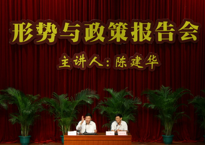 自我校筹建新校区以来,市委市政府一直高度重视我校的建设发展,市主要领导也多次亲临我校为我校师生作形势与政策报告。此次陈建华书记在金融危机背景下所作的这场报告,对我校师生转变观念、鼓舞信心具有十分重要的意义。陈书记在河源的两年时间里,高度重视关注我校的建设发展,多次亲临视察,亲自拍板促成了我校的实训中心二期及行政办公大楼建设,为我校图书馆捐赠了有价值的一批书籍,还曾多次在网上亲自回复我校学生提出的问题。