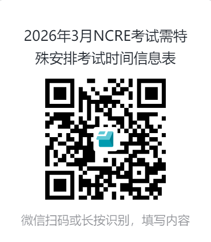 NCRE实行网上报名。考生网上报名时间为2025年12月26日上午10:00时至2026年1月5日16:00时。