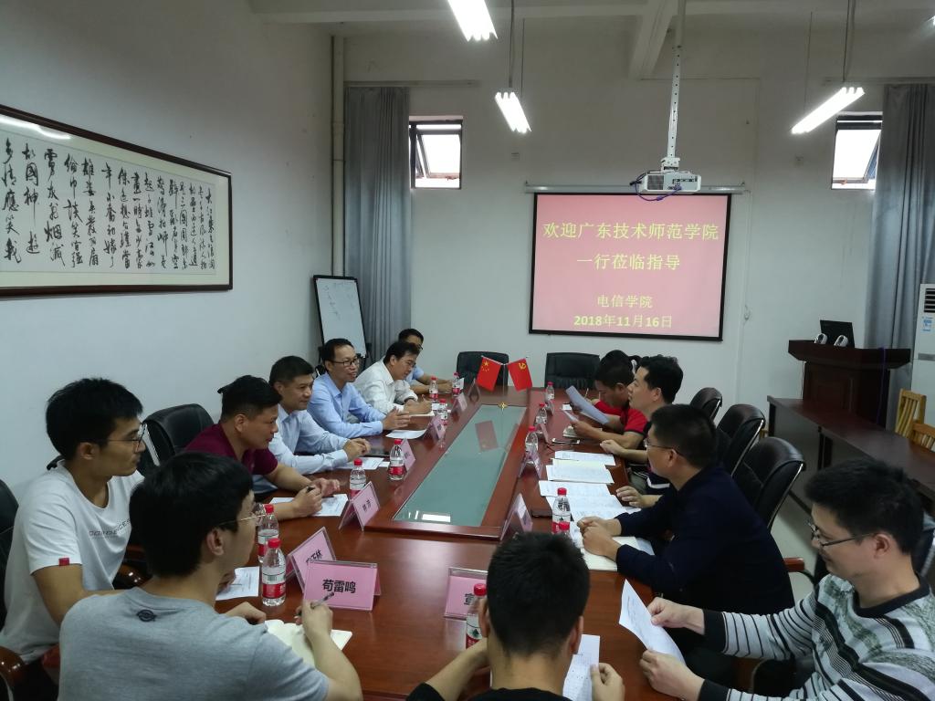 11月16日,广东技术师范学院电子与信息工程学院党委副书记罗旭辉、副院长柳秀山一行10人莅临我校电子与信息工程学院交流“3+2”人才培养方案。我校电信学院杨黎院长、徐国辉副书记以及电子信息工程技术专业部分教师参加交流会。