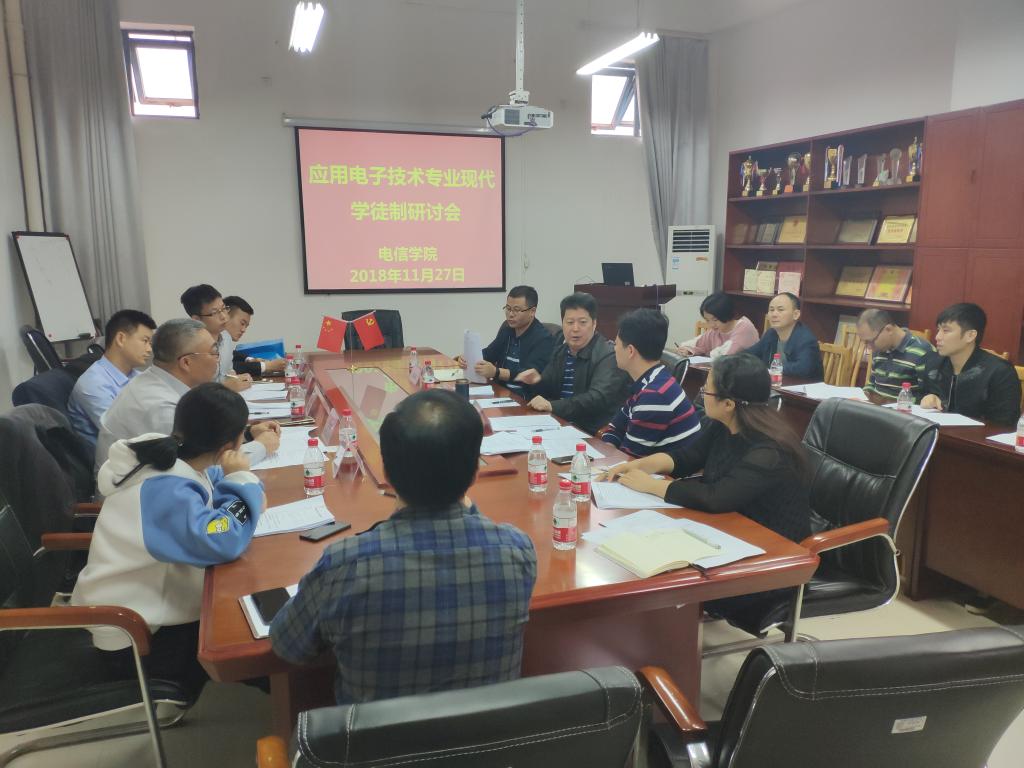 11月27日下午,我校在电信学院会议室召开国家现代学徒制试点专业研讨会。我校副校长陈农心,中兴通讯河源基地生产部部长朱林林、制造职业学院副院长邱华盛、HR4部招聘总监张孝先等人员,学校招生办代表,电信学院相关负责人以及应用电子技术专业全体教师等参与了此次会议。