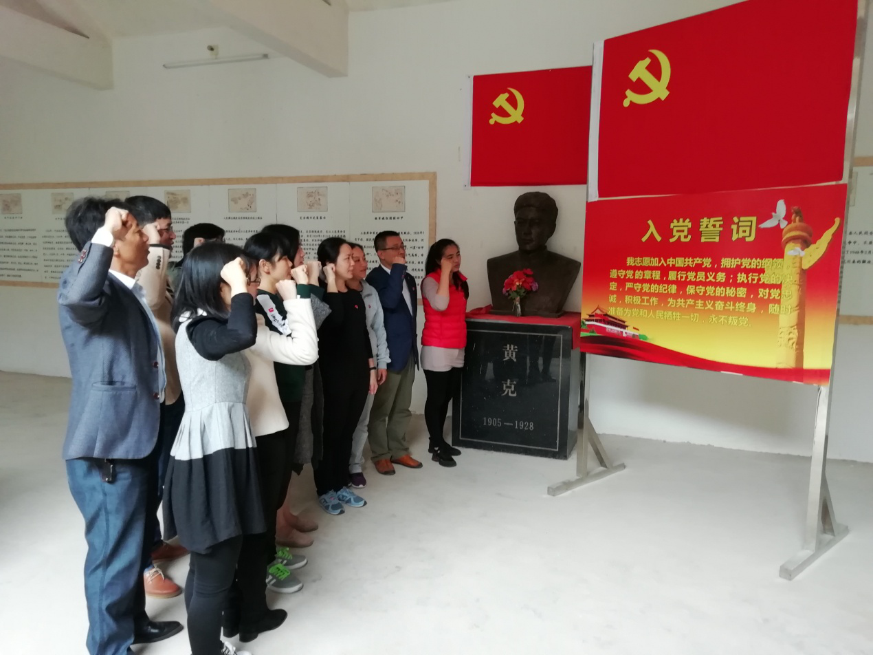 进入纪念馆,首先看到龙川籍革命烈士黄克同志的遗像、鲜艳的中国共产党党旗和入党誓词,党员同志们自发地列队站成一排,举起右手进行宣誓。
