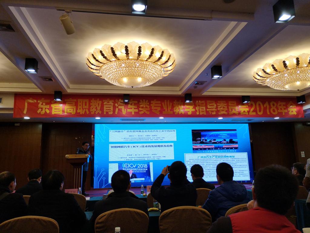 广东省高职教育汽车类专业教学指导委员会2018年会于12月29日在佛山召开,来自全省20多所高职院校汽车类专业的学校代表参加了此次活动。年会围绕“新时代背景下广东省新能源与智能网联汽车技术发展与高职院校汽车专业建设”的主题,安排了多个专家报告,我校陈纪钦、叶永玖、洪子荣一行三人参加了此次会议。