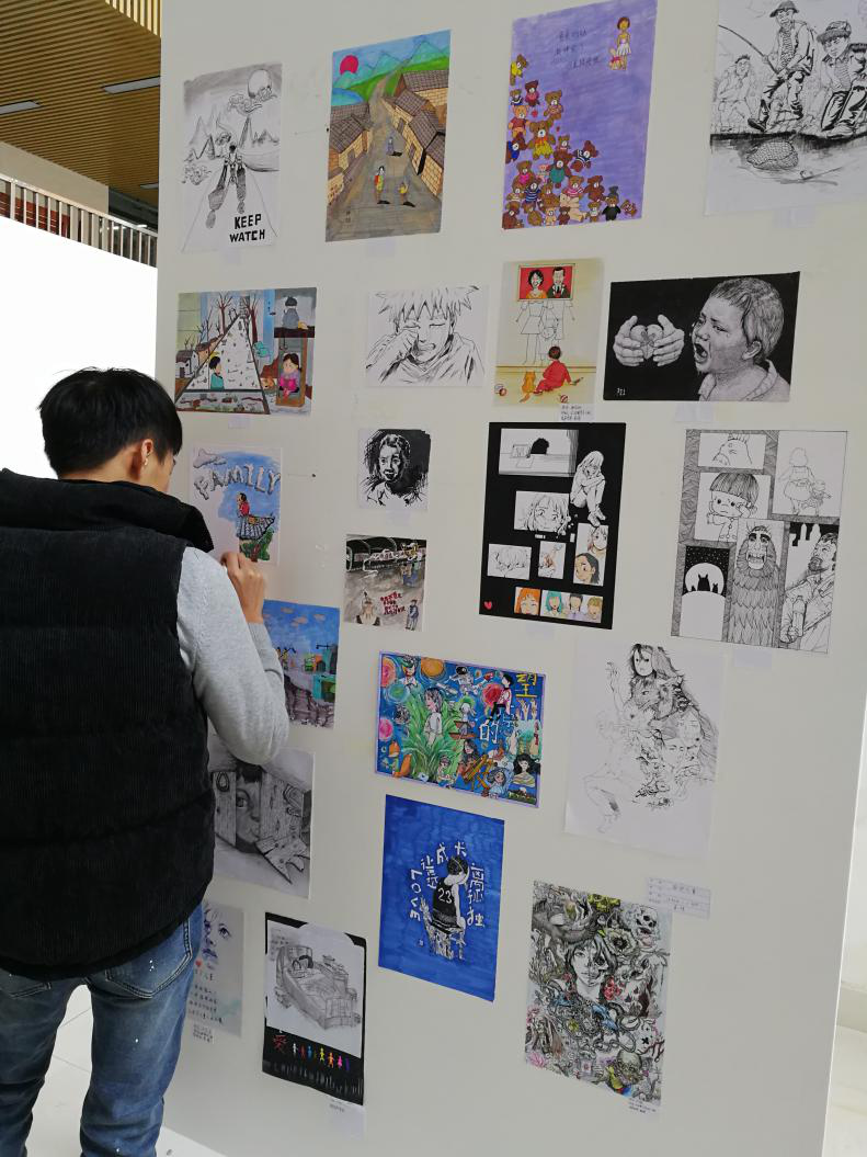 1月3日,我院环境艺术设计专业在图书馆举办了专业作品展,展览吸引了众多观展嘉宾。本次展览共展出百余幅作品,分别由大一、大二、大三平时作业组成。该展览内容丰富,有巧妙设计的三大构成,他们应用黑白关系,设计出不一样的风采;有中国的传统习俗绣鞋垫;有丰富多彩的色彩构成,用水彩,马克笔等一系列的材料,把各种色调对比发挥得淋漓尽致;有各式各样的风景写生,运用疏密等关系仅用一支针管笔就能呈现出一幅精美杰作;更有该专业的室内设计手绘,根据自己的想法按比例绘制出来,让人充分了解该设计的格局;最令人震撼的是那些室内设计的效果图,他们用手与脑相结合的能力为我们展现出更具特色的专业风采,还有景观课程、综合实训课程所参与的建筑模型,吸引了大量的学生参观并给予一致好评。