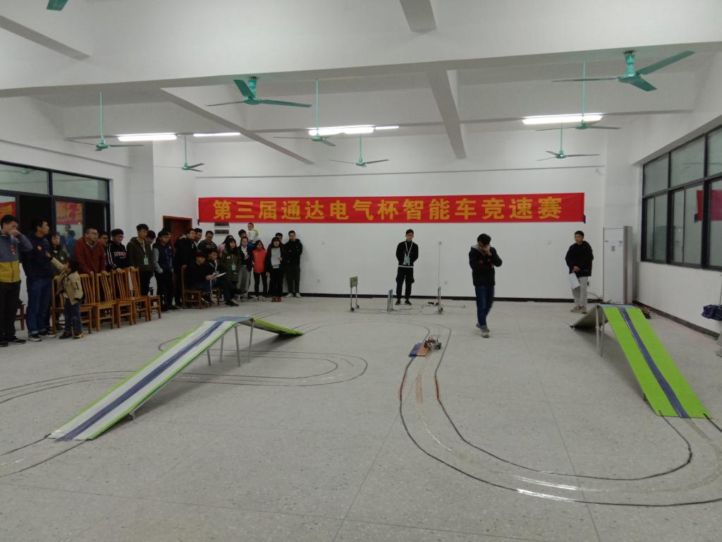 1月3日晚上,我校第三届 “通达电气杯”智能车越野竞速赛在实训楼D514教室顺利举行,共有23支来自机电学院和电信学院的参赛队伍报名参加了本次竞速赛。