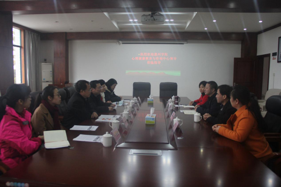 1月4日,惠州学院教育科学学院副院长何资桥带心理健康教育与咨询中心专兼职教师一行6人来我校心理健康教育咨询中心(简称心理中心)进行交流考察。学工处何智聪处长在学校第二会议室接待了来访客人,心理中心主任钟碧来及中心教师参加了交流会。