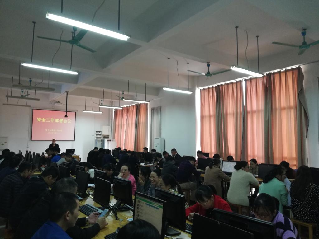 1月14日下午,我院在实训楼A213召开安全工作布署会议,学院全体教职工参加本次会议,会议由学院副院长周永福主持。