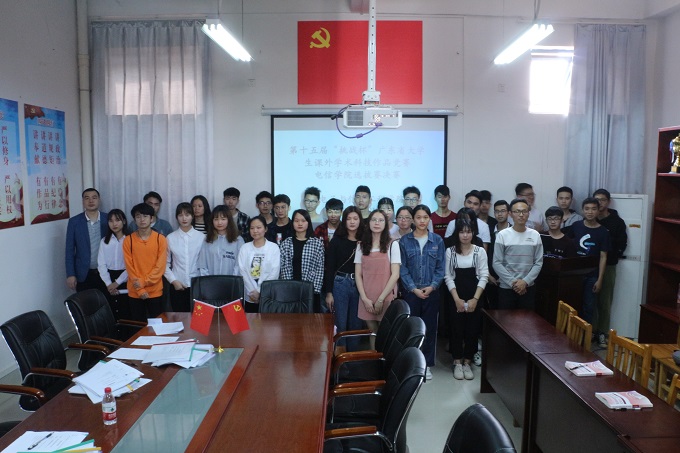 3月21日,电信学院于实训楼A208举办第十五届“挑战杯”广东大学生课外学术科技作品竞赛院级选拔赛决赛。参加人员有评委老师、团总支学生会主席团成员、各专业学生代表、比赛选手,比赛由陈冬呤同学主持。
