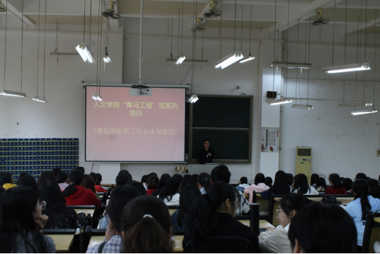 4月2日下午, 人文学院团总支学生会于教学楼D206举办学生干部“青马工程”班系列培训——《基层团组织工作方法与途径》讲座。人文学院团总支、学生会全体干部,18级团支部书记,各协会代表参与了此次培训讲座。此次培训班由学院团总支书记谢国栋老师主讲。
