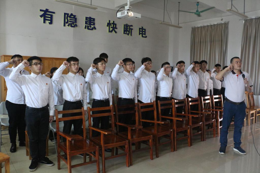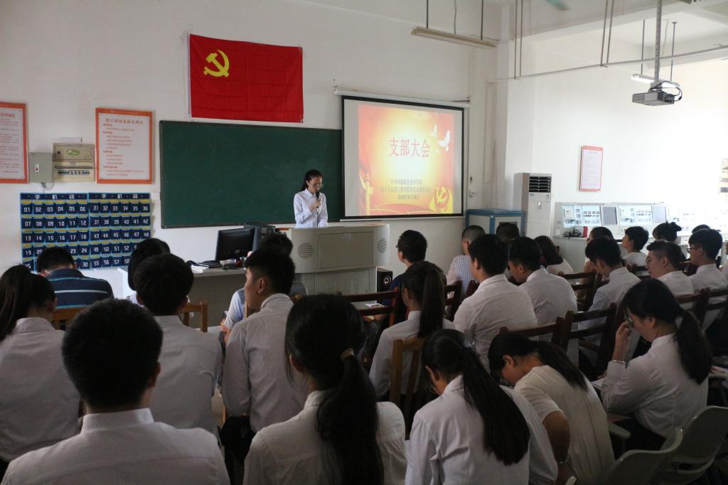 6月14日下午,电信学院学生党支部于实训楼A216召开学生支部大会暨入党宣誓大会。出席大会的人员有电信学院学生党支部成员、全体预备党员、入党介绍人、组织部委员。会议由学生党支部书记杨日奎主持。