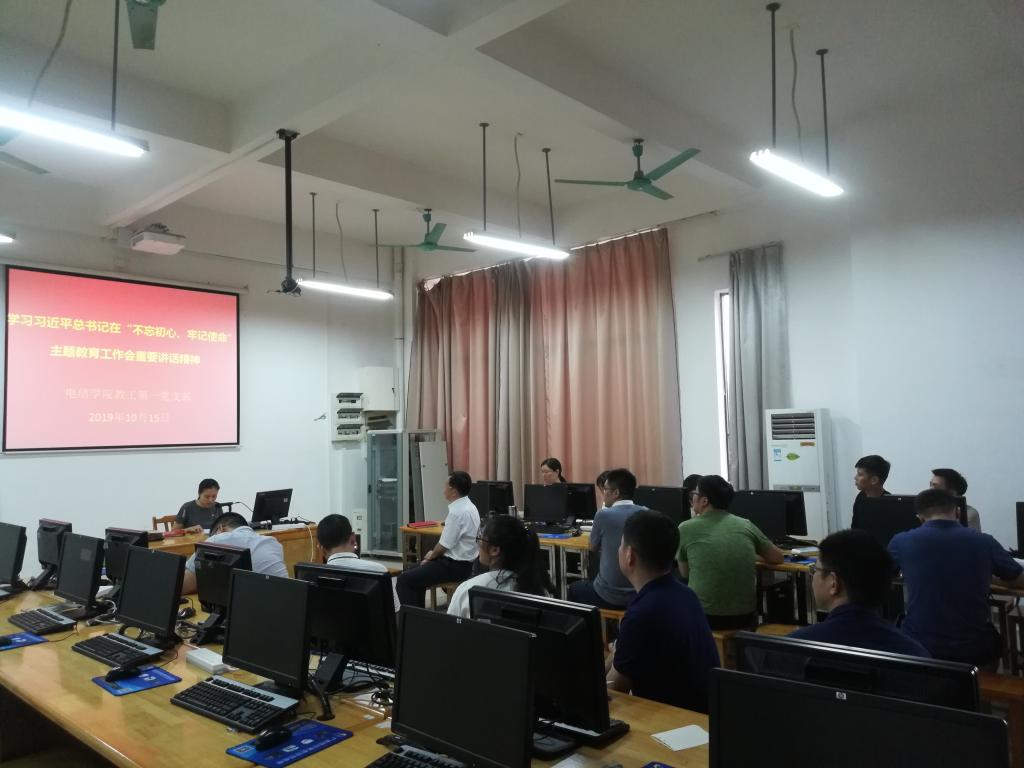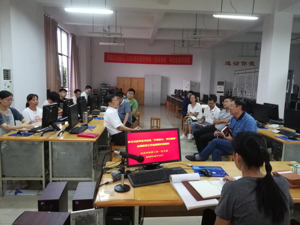 为了进一步推动学校“不忘初心、牢记使命”主题教育深入开展,对照《IM在线登录关于开展“不忘初心、牢记使命”主题教育实施方案》,结合本支部实际情况,电信学院教工第一党支部于10月15日下午召开党员大会,共同学习习近平总书记关于“不忘初心、牢记使命”主题教育工作会议重要讲话精神。学校党委韦荣书记作为支部成员参会,电信学院教工第一党支部全体党员参加会议。