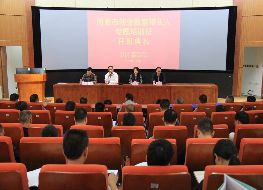 11月4日至8日,由河源市扶贫工作局组织的“河源市创业致富带头人”专题培训班第一期和第二期在河职院开班。此次专题培训班由我校继续教育学院承办,继续教育学院的工作人员全程负责组织带队。来自河源市龙川县、江东新区、东源县共143人参加了第一期培训,来自河源市源城区、和平县、连平县、紫金县共144人参加了第二期培训。在专题培训班第一期和第二期的开班典礼上,我校继续教育学院李文萍院长、江巧良副院长分别致欢迎辞,河源市扶贫工作局党组成员、副局长李进强同志在两期开班典礼上均作了动员讲话。