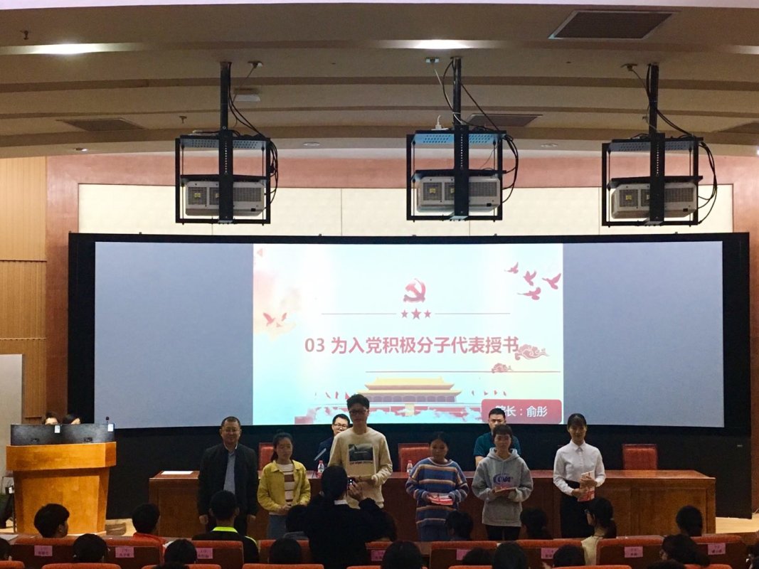 学生党员代表李嘉敏与入党积极分子代表陈枢雅分别上台发言,向全体学员讲述了入党对自我的要求与准则,并向在座的入党积极分子发出倡议,要牢记宗旨,不辱使命,勤奋工作,充分发挥共产党员的先锋模范作用和带头表率作用。