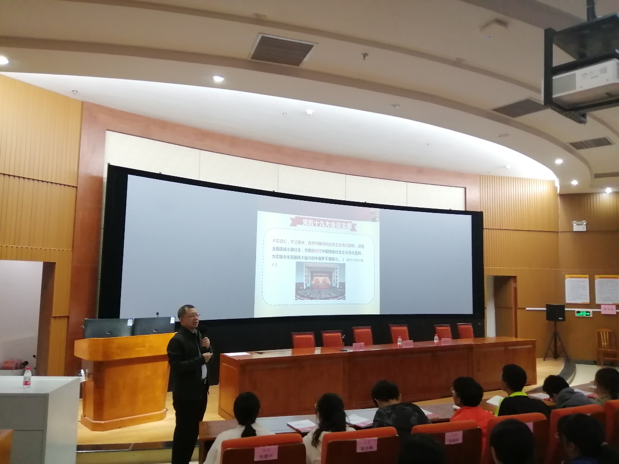 最后,俞彤书记以“争做新时代有为青年”为主题作党课第一讲。课堂上,俞书记结合习近平总书记对青年的讲话精神,以生动的案例给学生带来了一堂精彩纷呈的党课。俞彤书记希望各位入党积极分子珍惜此次来之不易的学习机会、认真学习,争取早日加入党组织,以自己的实际行动为党旗增光添彩。