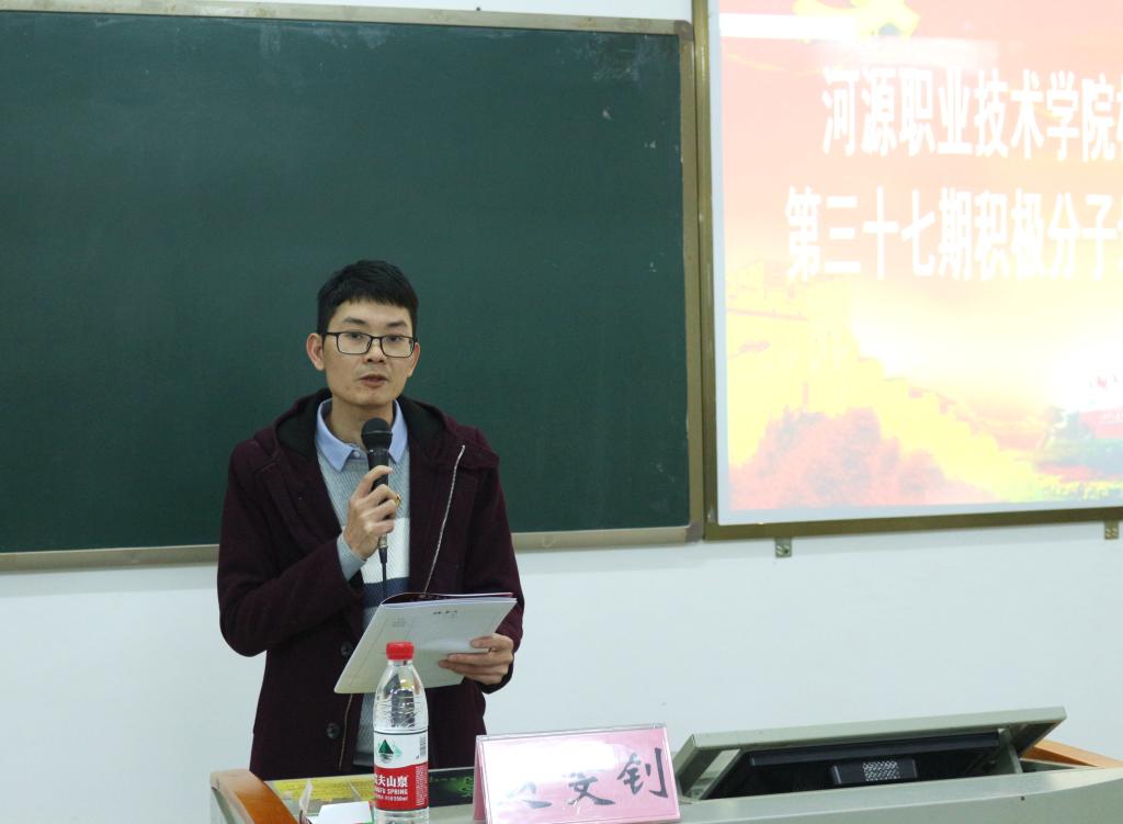 12月10日,机电学院第37期入党积极分子党校培训班开班仪式暨《肩负使命,砥砺前行》主题报告在实D312举行。学院党总支书记钟建坤、副书记黄亮、学生党支部全体委员及76位学生新入党积极分子出席此次开班仪式,活动由学生党支部组织委员赵雯钊主持。