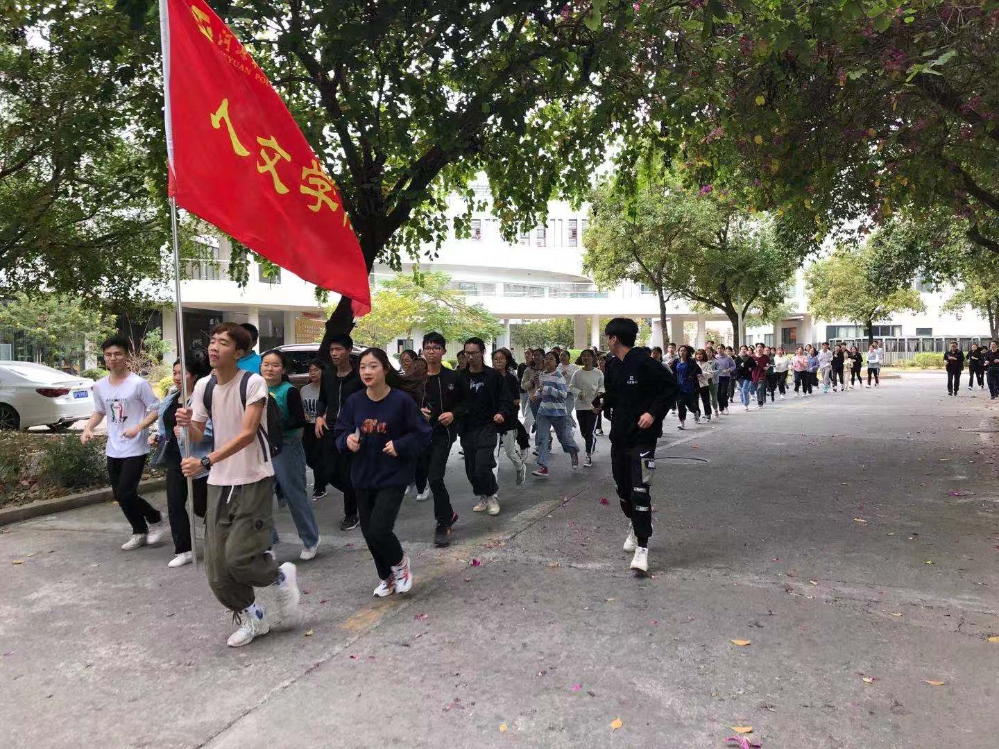 跑前,为了预防在运动过程中受伤,学院学生会体育部委员带领大家做热身运动。运动队伍以行政楼为起点,围绕着校道整齐有序的欢乐奔跑。一路上,大家面带笑容,步履坚定,最终都坚持到了终点。