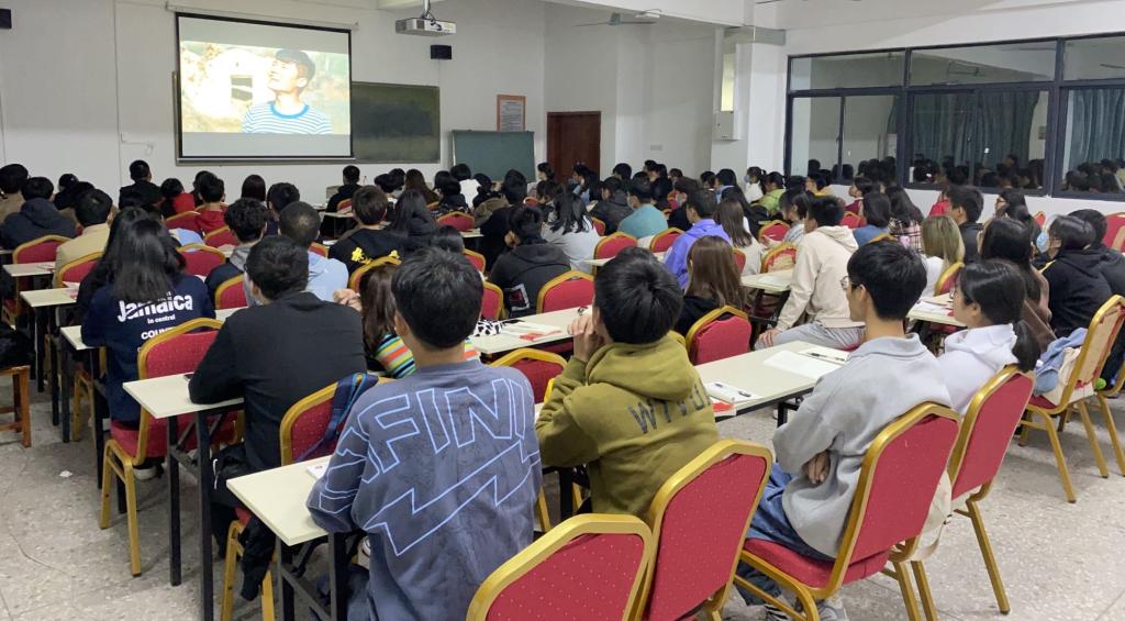 黄章华老师讲解了注意事项后,观影活动正式开始。电影讲述了一个平凡农民的平凡故事,郭富山二十三年如一日,以愚公移山的精神,在“十年九旱”的会宁,修反坡、植树造林,用辛勤和汗水绿化了一座荒山,赢得了领导和群众的赞扬。