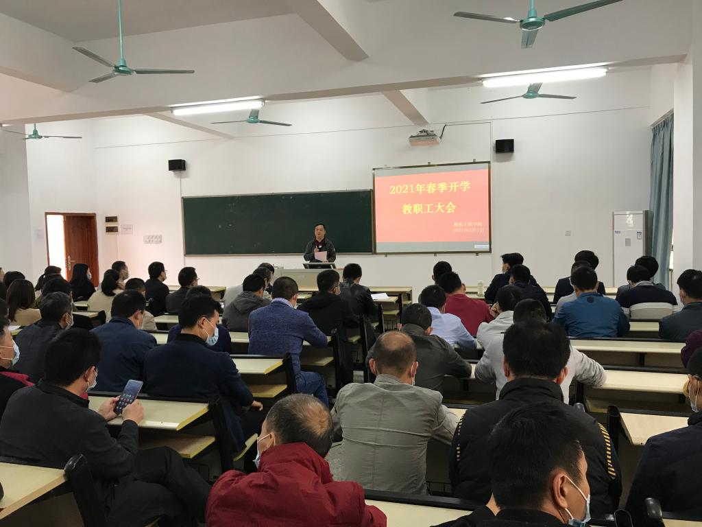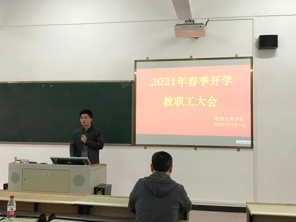 3月1日上午,机电工程学院在实训楼D312召开春季开学教职工大会,赖小景副校长、学院全体教职工参加大会,大会由钟建坤院长主持。