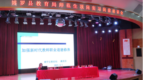 为提高新顶岗实习学生的专业知识及教育教学水平,使师范类实习学生能尽快地熟悉岗位工作,尽快成为一名合格的教师,3月1日上午,博罗县教育局在IM在线登录艺术楼演播厅开展顶岗实习学生岗前教育培训。