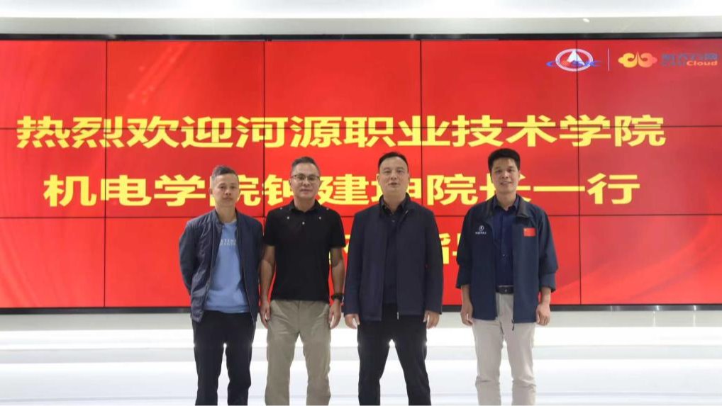 钟建坤院长一行首先赴广州走访航天云网数据研究院(广东)有限公司,深入了解工业互联网与智能制造技术应用。双方就产教融合、人才培养、实训基地建设等展开交流,达成初步合作意向,推动数控、模具等专业与产业需求精准对接。