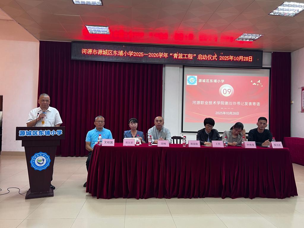 2025年10月28日下午,我院与源城区东埔小学共同举行了东埔小学 “青蓝工程”师徒结对活动启动仪式。我院党委副书记谢战锋及邱锋、郑尔君、王莉、钟燕瑾等4名专家教师参与活动。
