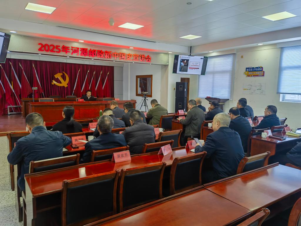 宣讲中,杨党校以党的二十届四中全会精神为统领,紧扣“历史主动精神”“十五五规划”“中国式现代化”等构建“历史纵深+时代要求”的宣讲框架。他从国际国内复杂形势切入,系统梳理新中国前三十年关键发展节点,客观呈现探索中的成就与经验教训,结合全会精神解读了新中国史与中国式现代化的内在逻辑,强调以“坚持正确党史观”看待重大历史事件。宣讲最后,杨党校以“深学细悟强信念,笃行实干担使命”作结,激励河源邮政系统党员干部从新中国史中坚定“四个自信”,将学习成果转化为服务群众的实际行动,在寄递服务、金融便民等领域主动作为,为河源经济社会高质量发展贡献力量。