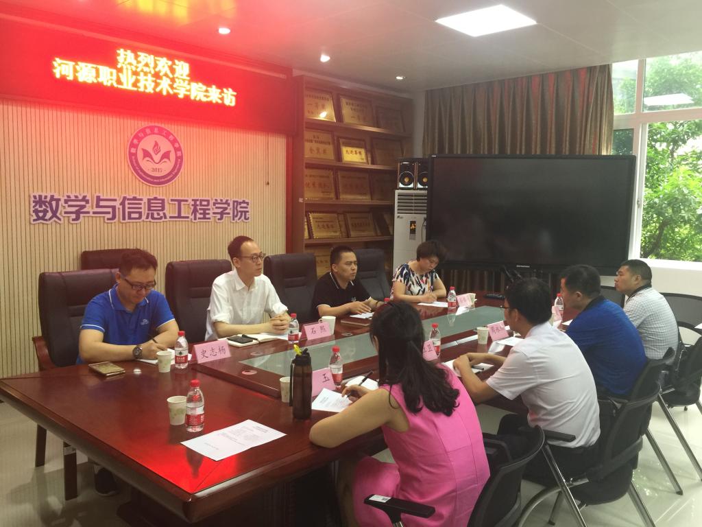 7月4日,电信学院周永福副院长率大数据技术与应用专业部分教师赴重庆第二师范学院交流学习,受到了数学与信息工程学韦鹏程院长等相关领导的热情接待,与会人员主要围绕大数据技术专业发展方向、课程建设、校企合作、大数据创新中心等进行了交流讨论。同时,参观了由中科曙光合作共建的“产教融合、数据中国百校工程基地”。中科曙光公司的古经理对整个工程基地的建设和校企共建的合作模式进行了详细的介绍。