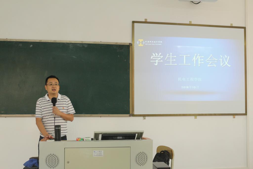 为促进新学期学生工作的有序开展,10月9日下午,机电学院在实训楼D312召开了学生工作会议,机电学院党总支副书记黄亮、全体专兼职辅导员参加了此次会议,会议由团总支书记杨成主持。
