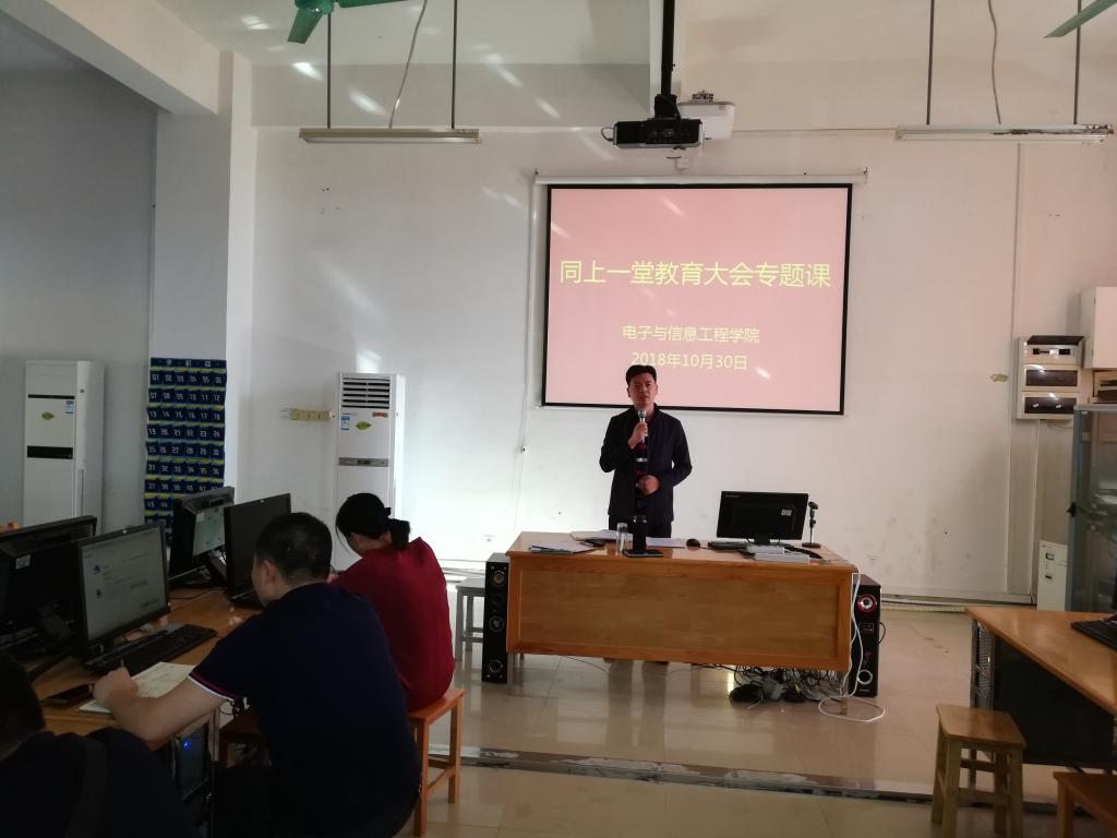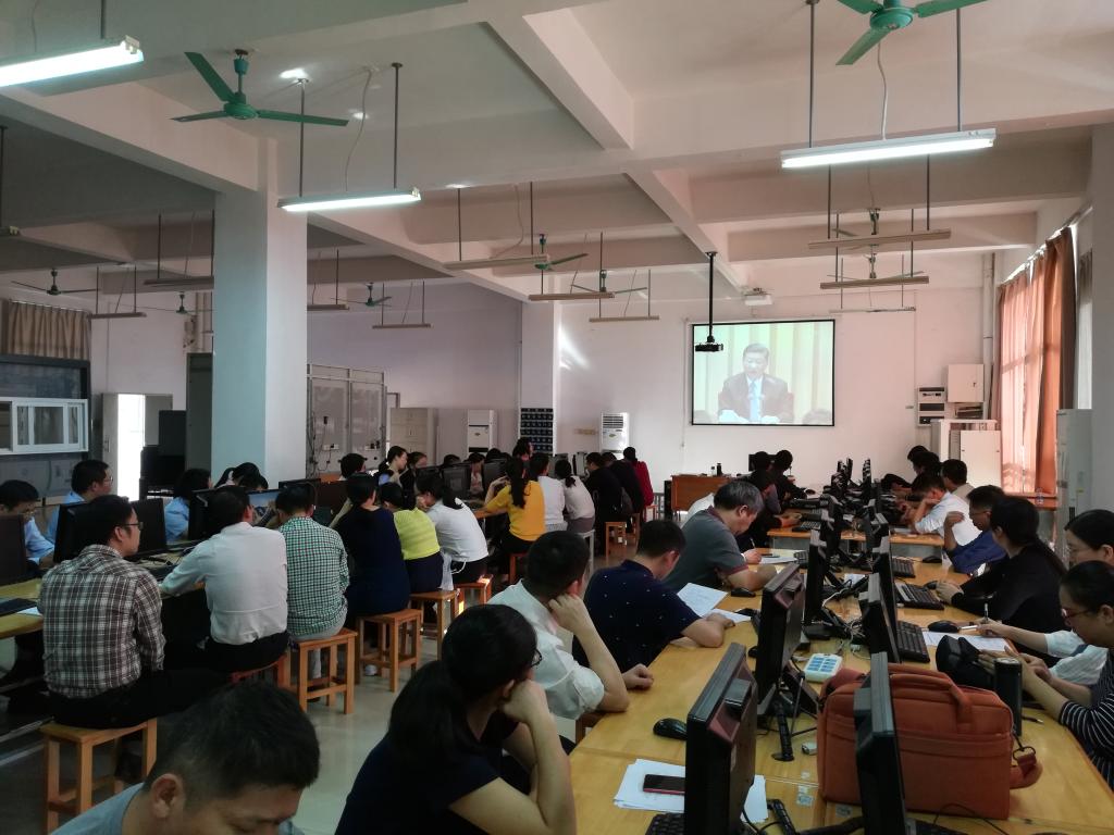 10月30日下午,电信学院在实训楼A213开展“同上一堂教育大会专题课”学习会。学院全体教职工参会,由学院党(总)支部书记、院长杨黎同志主持。