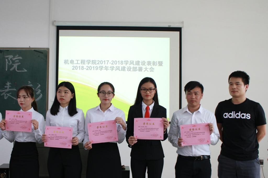 首先,学院学生会副主席刘华增对2017-2018学年学院学风建设进行总结。接着,由黄章华老师宣读表彰2017-2018学年优良学风班级、优秀学风个人决定,并为获奖优秀学风个人、优良学风班级代表颁奖。