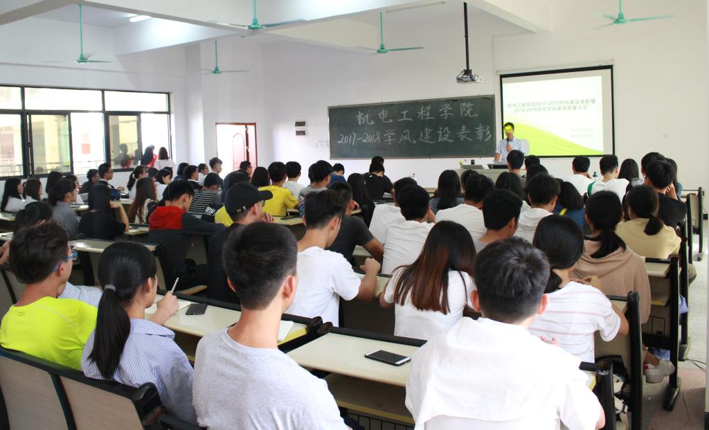 11月6日下午,机电学院在实D311召开2017-2018学年学风建设表彰暨新学年学风建设大会。出席此次活动的有学院办公室负责人邱志文,团总支书记杨成,辅导员黄章华、易志华,2017-2018学年优秀学风个人、优良学风班级代表以及各班级代表,活动由杨成书记主持。