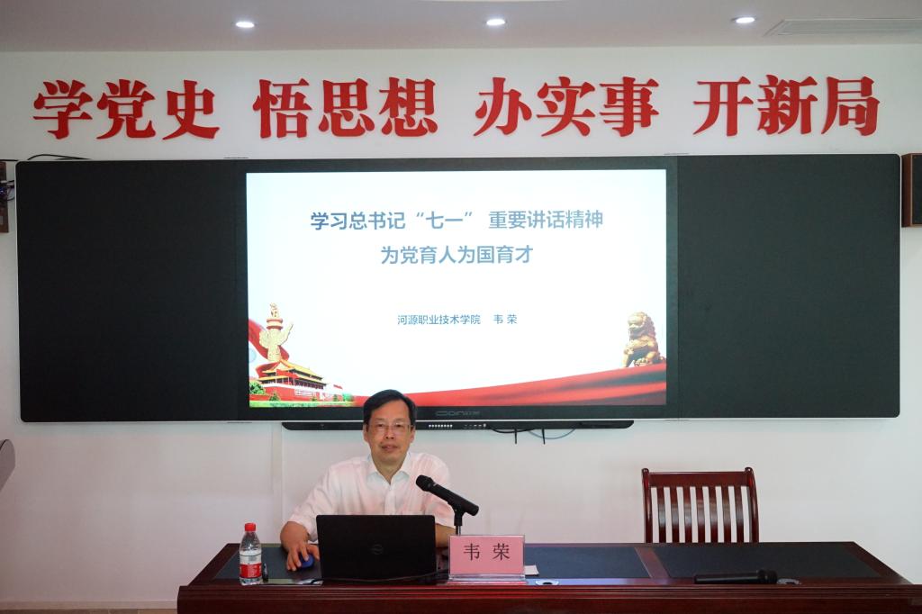 韦荣书记从中国共产党百年历史的主题和光辉历程、继承和弘扬伟大建党精神、坚持‘九个必须’为党育人为国育才三个方面深刻阐述了中国共产党团结带领中国人民开辟伟大道路、创造伟大事业并取得伟大成就的艰苦历程,分析了伟大建党精神的深刻内涵,继承和弘扬伟大建党精神,系统讲解了坚持“九个必须”的重要意义和重要观点。报告主题鲜明、内容丰富、重点突出、通俗易懂,对继续教育学院全体党员教师进一步深入学习领会习近平总书记“七一”重要讲话精神,起到了重要的推动作用。