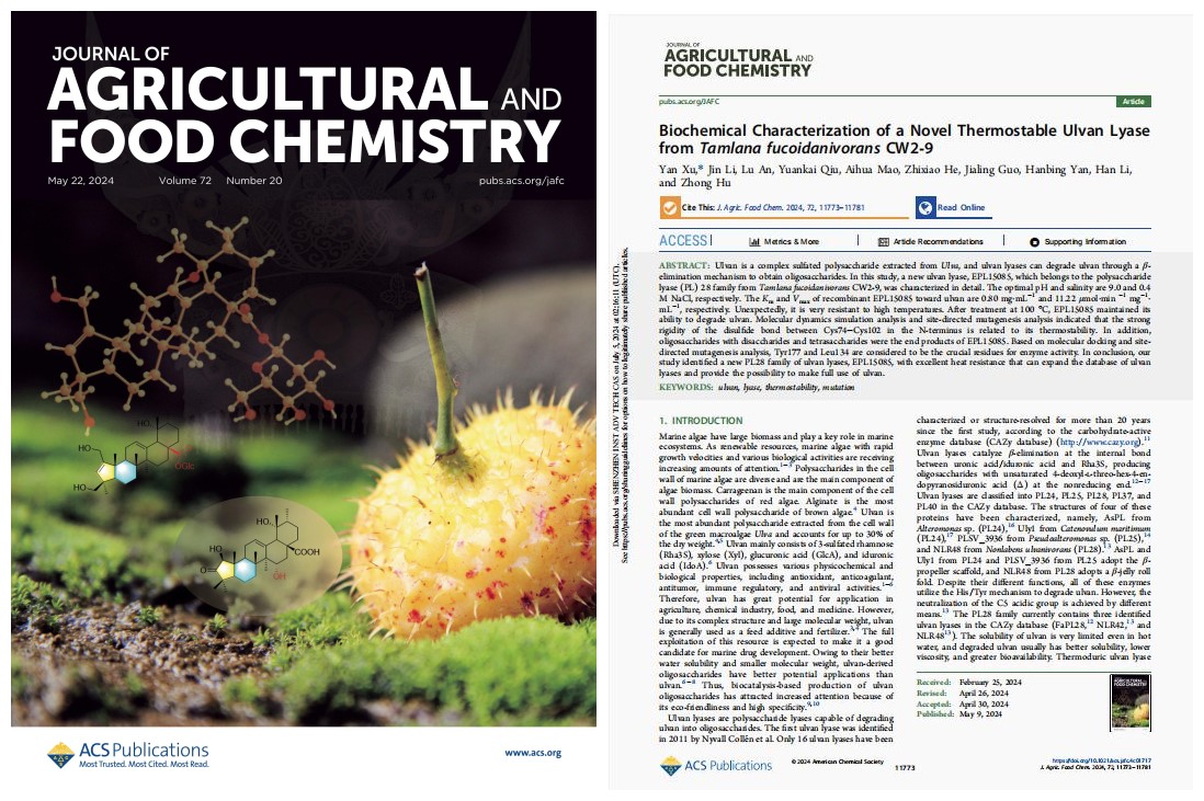 (徐艳博士师生团队相关研究成果在国际权威期刊JAFC发表)