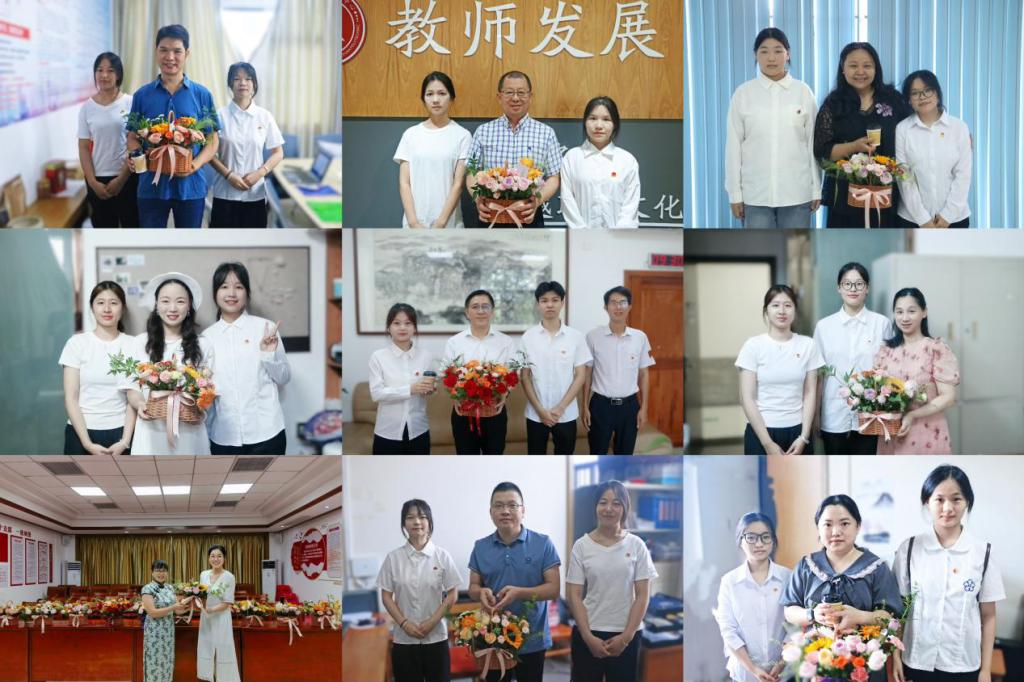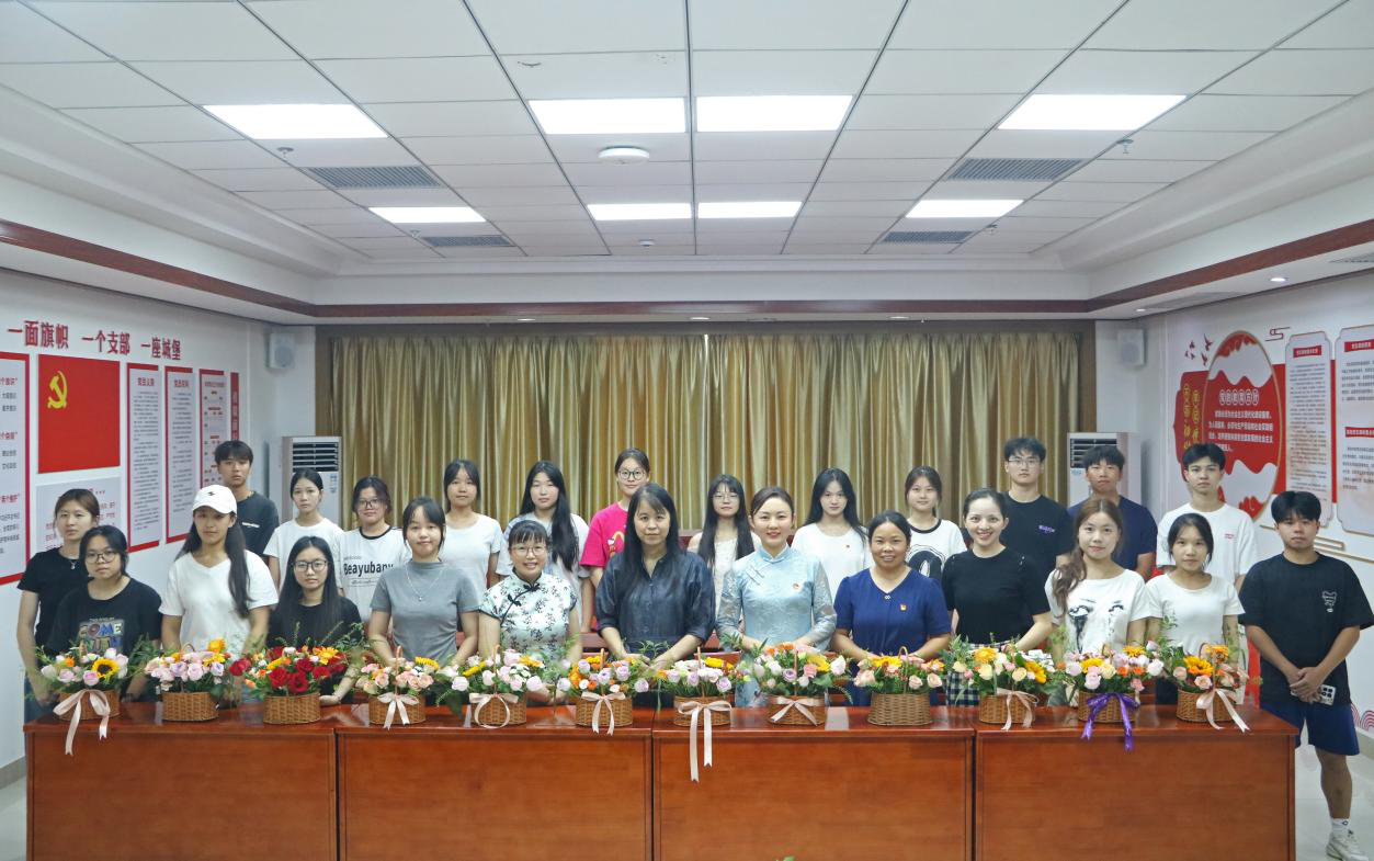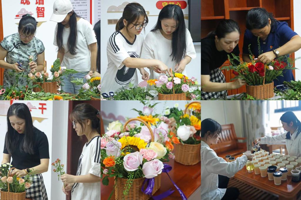 在节日来临前夕,各支部党员教师代表带领一批品学兼优的学生,便开始细致的准备工作。教师们不仅手把手指导学生挑选花材、修剪枝叶、构思造型,更在互动中传递着美育与感恩的教育理念。师生之间默契协作,将一朵朵康乃馨、向日葵、玫瑰等鲜花精心编织成一束束寓意深远的精美花礼。每一束花凝结着党员教师的奉献精神,也承载着学子们最赤诚的感恩之情。