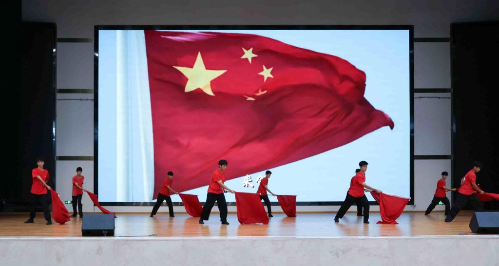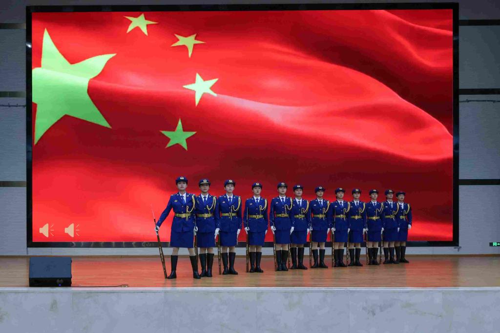 各参赛队伍依次上场比赛,展现出良好的训练素养和青春昂扬的精神风貌。比赛期间,我校国旗护卫队表演了醒狮、女子花样枪操和红旗舞节目。