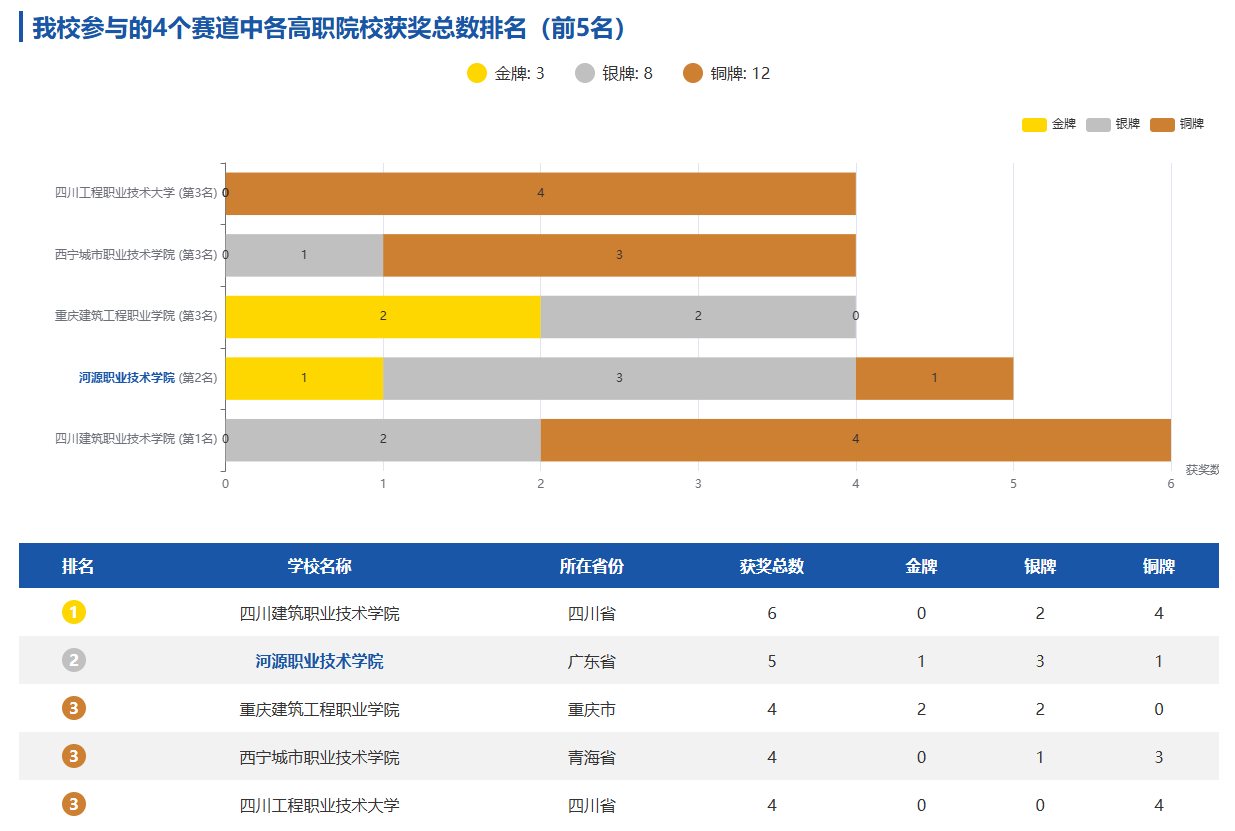 图2 我校参加的4个赛道中全国各高职获奖总数排名