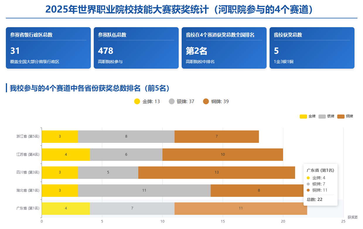 数据来源:2025年世界职业院校技能大赛总决赛争夺赛旅游、餐饮、土木建筑施工以及能源动力这4个赛道正式公布的获奖数据