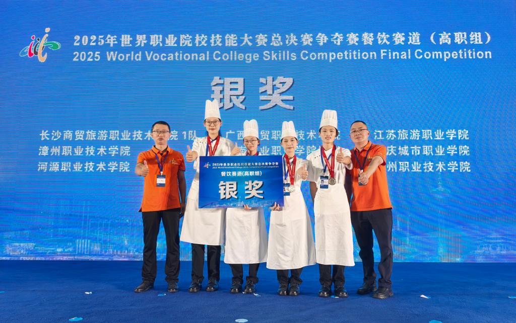 本届大赛以“技炫青春 能创未来”为主题,赛事难度与竞争激烈程度再创新高。赛道数量从去年百余个赛项组大幅融合为43个,竞赛内容更强调跨学科、复合型能力,对选手综合素质提出极高要求;同时,今年大赛整体获奖数量较去年减少约30%。在此“优中选优”的竞争环境下,我校在旅游、餐饮、土木建筑施工及能源动力4个赛道(共吸引全国31个省份、478支队伍参赛)中表现卓越,五支队伍逆势突围、全部获奖,共斩获1金3银1铜,获奖总数位列全国高职院校第二名,为广东省在这4个赛道以22项获奖总数荣登全国榜首提供了重要支撑,成为广东省代表队中的突出力量。百分百获奖率远超大赛平均水平,不仅凸显了学校对学生综合能力培养的持续投入与显著成效,也是地方职业院校服务区域经济发展的具体表现。