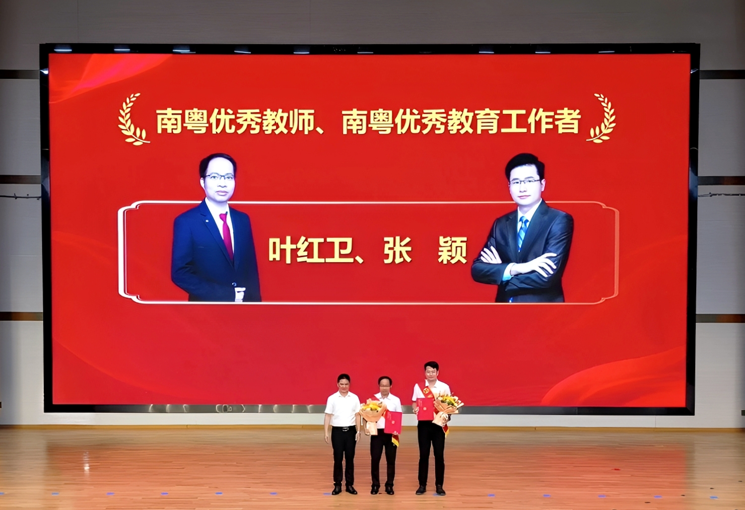 叶红卫老师荣获“南粤优秀教师”,张颖老师荣获“南粤优秀教育工作者”。
